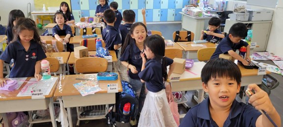 學生們在課堂中展現高度興趣,能主動描述結果、分享發現。老師引導孩子從「看見」到「說出」,從「操作」到「理解」,讓學習不再只是課本上的內容,而是與生活緊密連結的探索。整堂課充滿笑聲與驚奇,也讓孩子們在愉快的氛圍中,萌生對數學的好奇與信心。