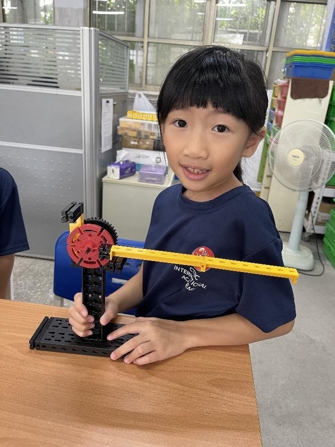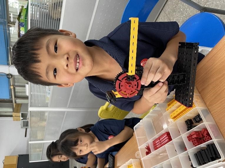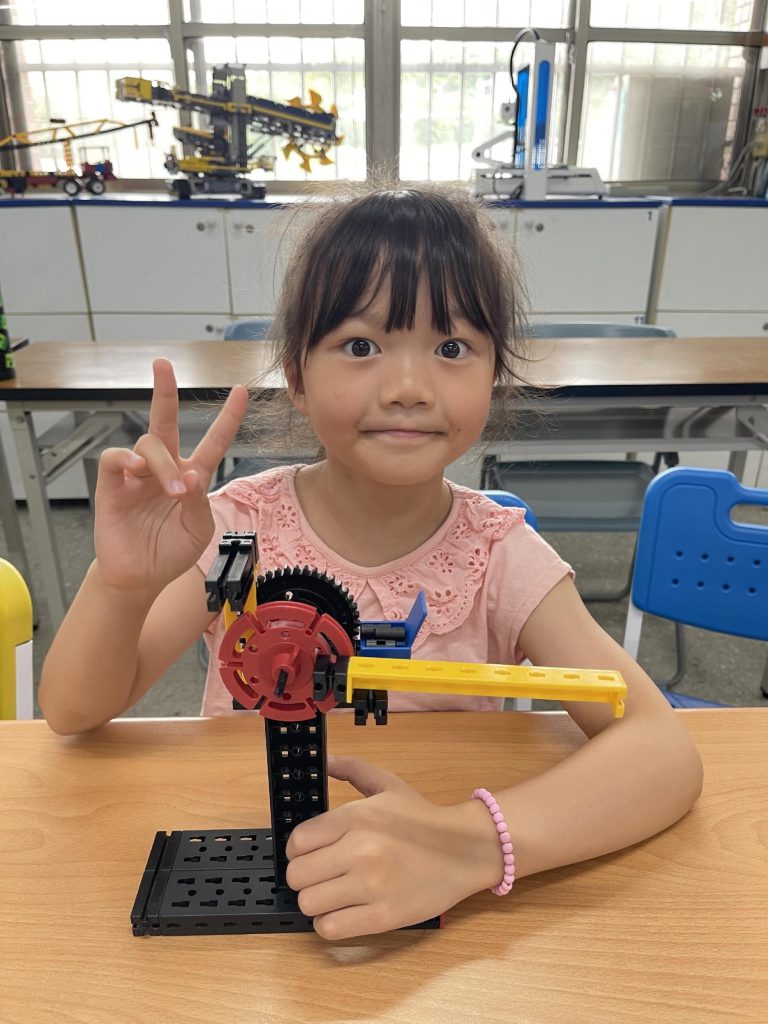 在實際操作階段,學生們按照步驟組裝積木,觀察不同齒輪配置的效果,最後完成能升降的柵欄門。課堂中,學生不僅積極回答問題,也會彼此討論、互相協助。部分學生還在空閒時間為作品加上個人創意的裝飾,讓機械結構與美感設計完美結合。