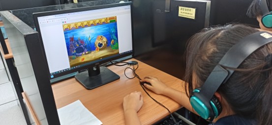 課程初期,教師帶領學生分析遊戲架構,包含角色設定、互動規則與得分機制,協助學生理解程式中的「事件觸發」、「條件判斷」與「迴圈」等核心概念。學生接著實際操作程式積木,設定魚群游動、餵食反應與背景變化,逐步完成屬於自己的虛擬水族箱。